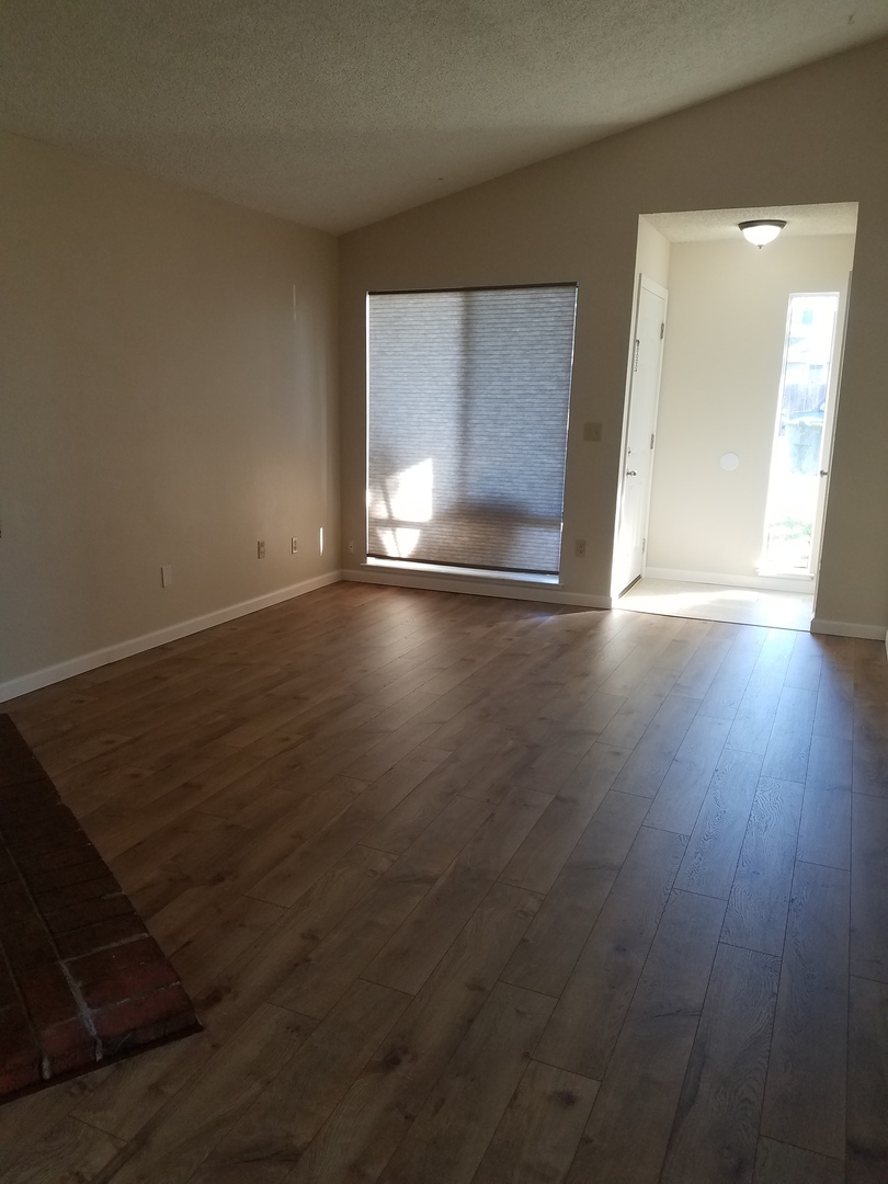 This 2 bedroom, 1 bath unit was just updated, new kitchen and bathroom, new flooring through out fresh paint! Hurry quick before its gone. Faux Fireplace, large bedrooms, laminate floor throughout! Large front yard and nice landscaped backyard.